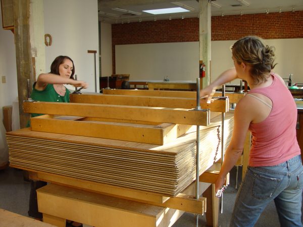 • Build two rigid frames the size of your tables. The frames go under and over the dryer stack to equalize the pressure you apply on the stack and keep the plywood from warping.