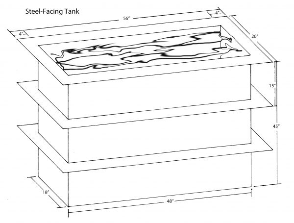Steel facing takes place in a vertical tank filled with an electrolyte solution made of dissolved metal salts and ions that permit the flow of electricity. The basic idea is to run an electrical current through the solution from a sheet of pure iron to a copper plate, both of which are suspended in the tank. The current causes ions of iron to be deposited onto the face of the copper. Both the copper plate and the iron sheet must be connected to a power source called a rectifier.